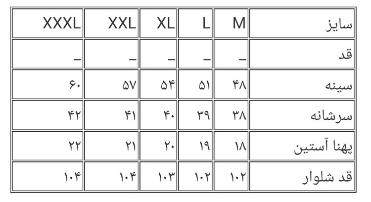 جدول سایزبندی در اسلاید عکسها موجوده
